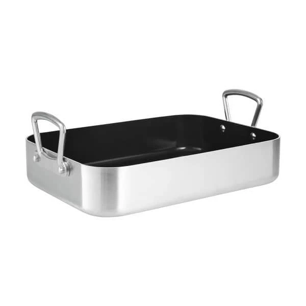De lodrette håndtag gør det nemt at gribe bradepanden direkte fra ovnen, så du let kan transportere aftenens stegte kylling til bordet.
