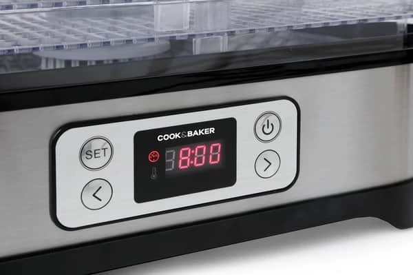 Med dehydratoren fra Cook & Baker bevarer du både smag og vitaminer. Vitaminer og mineraler bibeholdes under tørreprocessen og holdbarheden øges. Dehydratoren har indbygget timer på op til 72 timer med 5 tørreindsatser. Du kan vælge mellem 8 forskellige temperaturindstillinger mellem 35-70º C.