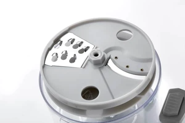Med minihakkeren undgår du besværet med rivejern og knive, og du får nemt og hurtigt et flot resultat. Du kan lave en portion råkost til madpakken, snitte løg til frikadellerne eller hakke nødder til dit bagværk på et øjeblik. Snitte og rivejern medfølger.