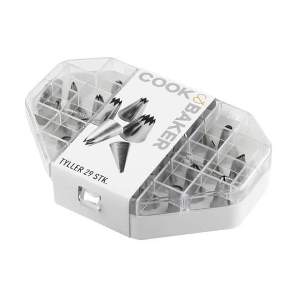 Synes du også, at det bedste ved at bage kager er dekoreringsdelen? Så vil du elske det ultimative sæt bestående af hele 29 tyller fra Cook & Baker.